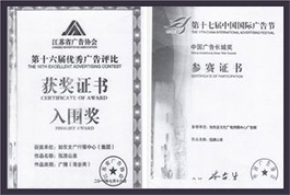 榮獲江蘇省廣告協(xié)會第十六屆優(yōu)秀廣告評比入圍獎