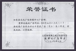 2010年在南通市優(yōu)秀廣告作品榮獲廣播(商業(yè))類二等獎